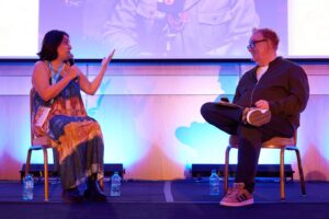 Leanne Allie from Unlocked Podcasts takes the floor, by introducing the “chemistry testing” method. Before the pilot episode of a podcast, participants should try free flowing, because sometimes people get really awkward in front of a camera and a microphone. This tactic will check the compatibility of both parties. She even suggests testing different co-host in pairs.